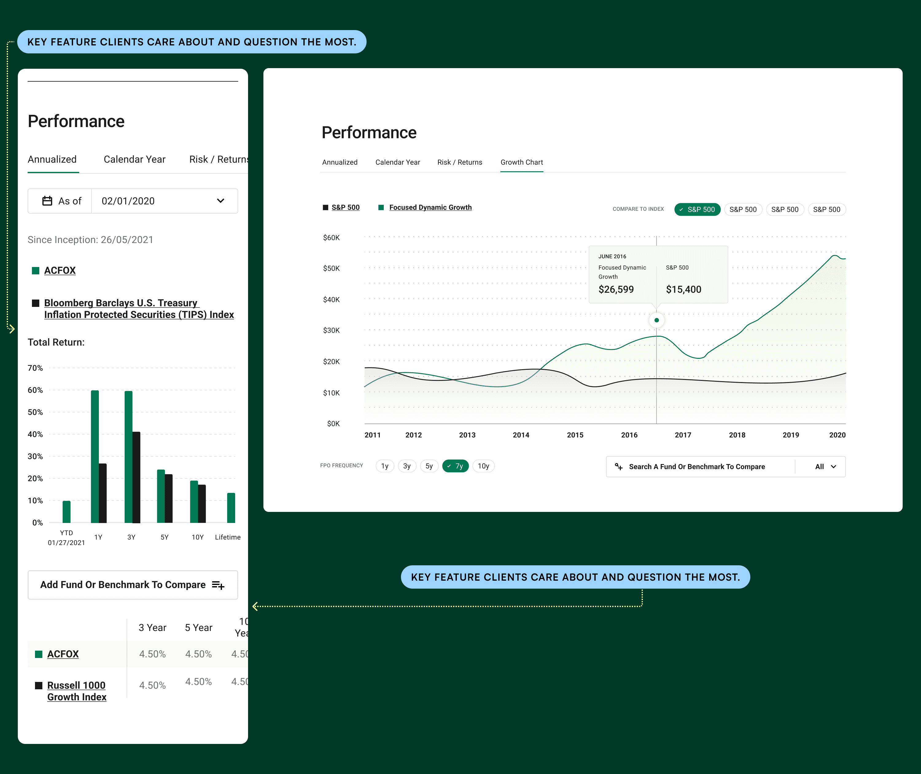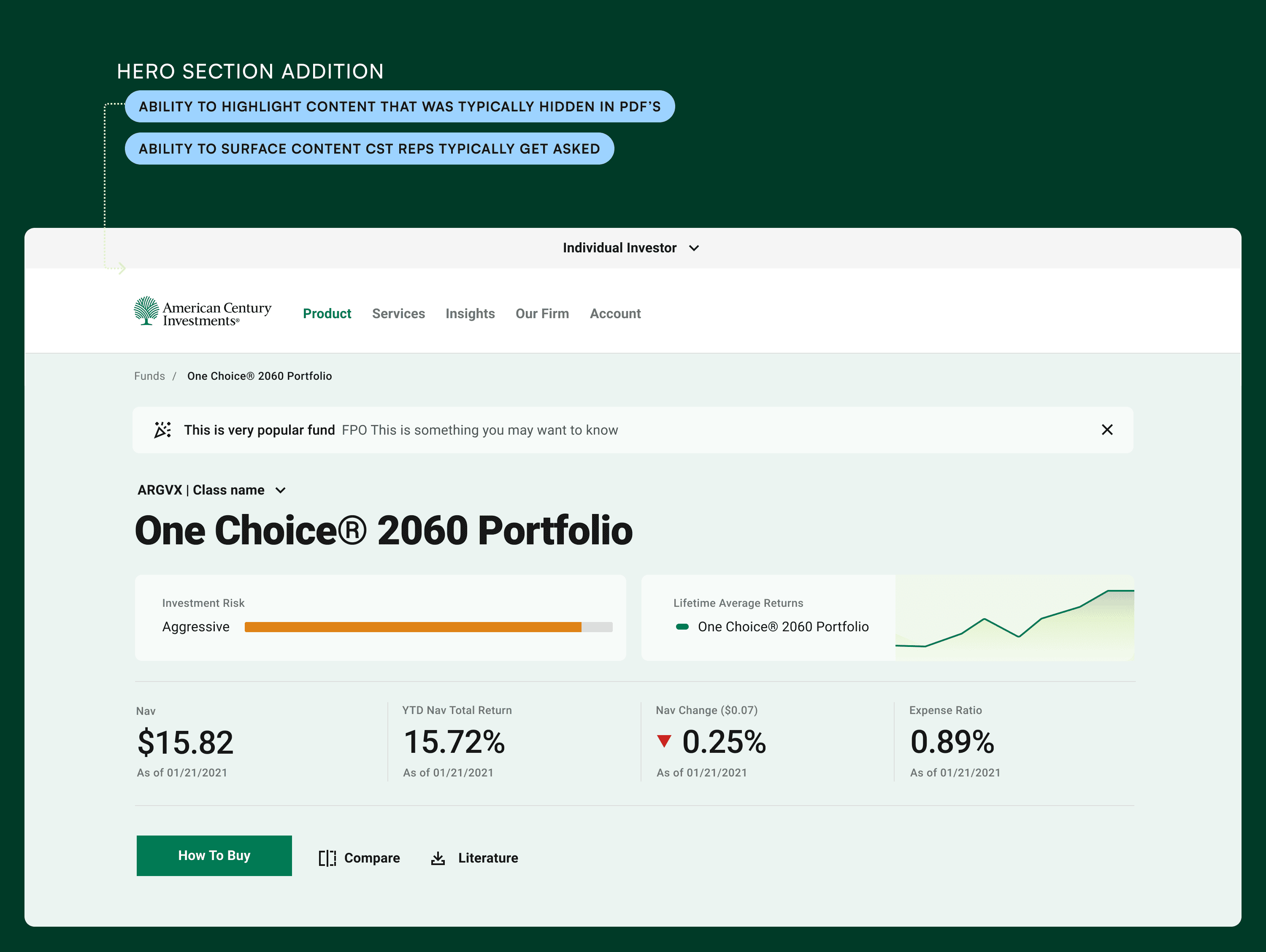 Working alongside the internal UX team, I redesigned core fund landing pages to clearly communicate value, performance, and next steps. The experience was designed to support multiple entry points, including ads, newsletters, and existing fund ownership.