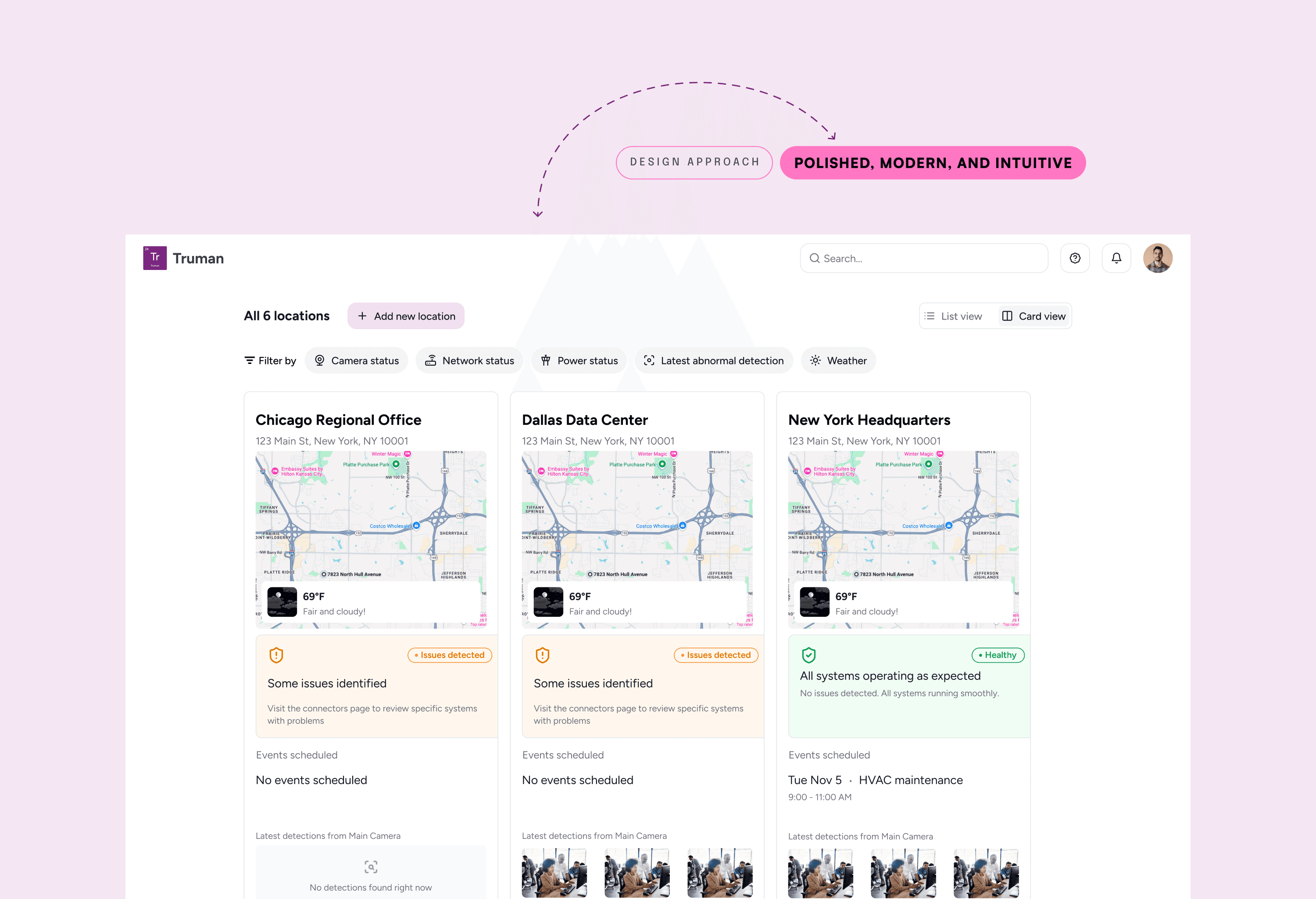 In just 10 weeks, the team delivered an alpha release of Truman, a next-generation physical security platform launched by Secure Passage to close the physical identity gap for modern enterprises. The alpha established a cohesive product foundation, validated core workflows, and enabled the organization to move quickly from funding to real-world product testing.